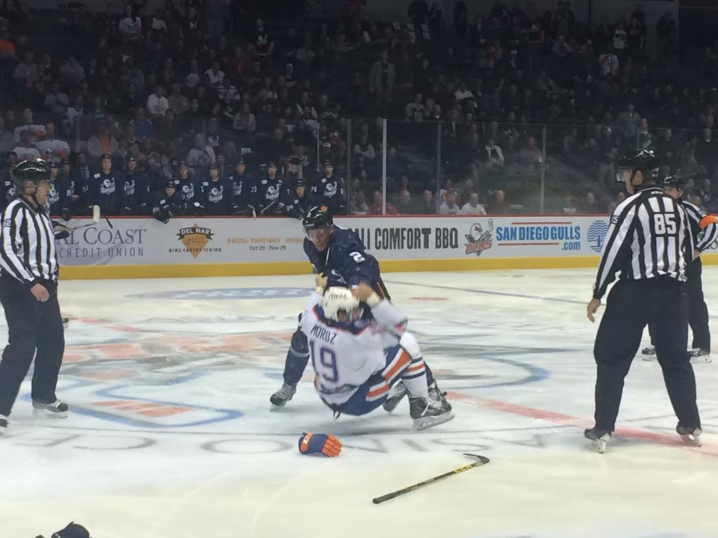 Their was a continuation of brawls that occurred the last game, and the Gulls won every one of them. First fight shown here in which Stu Bickel was victor: