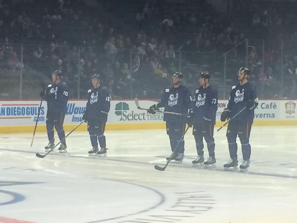 The San Diego Gulls kicked off military week in their blue digital camouflage jerseys and got revenge on the Bakersfield Condors, the team who handed them their first loss a while back.