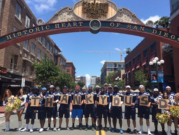 The players and organization tweeted out from their locations (Only known by staff, players and media) between the hours of 12:00 pm and 3 PM using the hashtag #THANKYOUSD. The hashtag allowing thus allowing fans close by to drive/walk over and meet the players. It also allowed social media to follow the party. Chargers President A.G. Spanos on why the Chargers put on #ThankYouSD,” “We’re taking this opportunity to thank fans for caring about the team and invite them to share our excitement about the 2016 season.” The last time the Chargers participated in #ThankYouSD was in June of 2013.