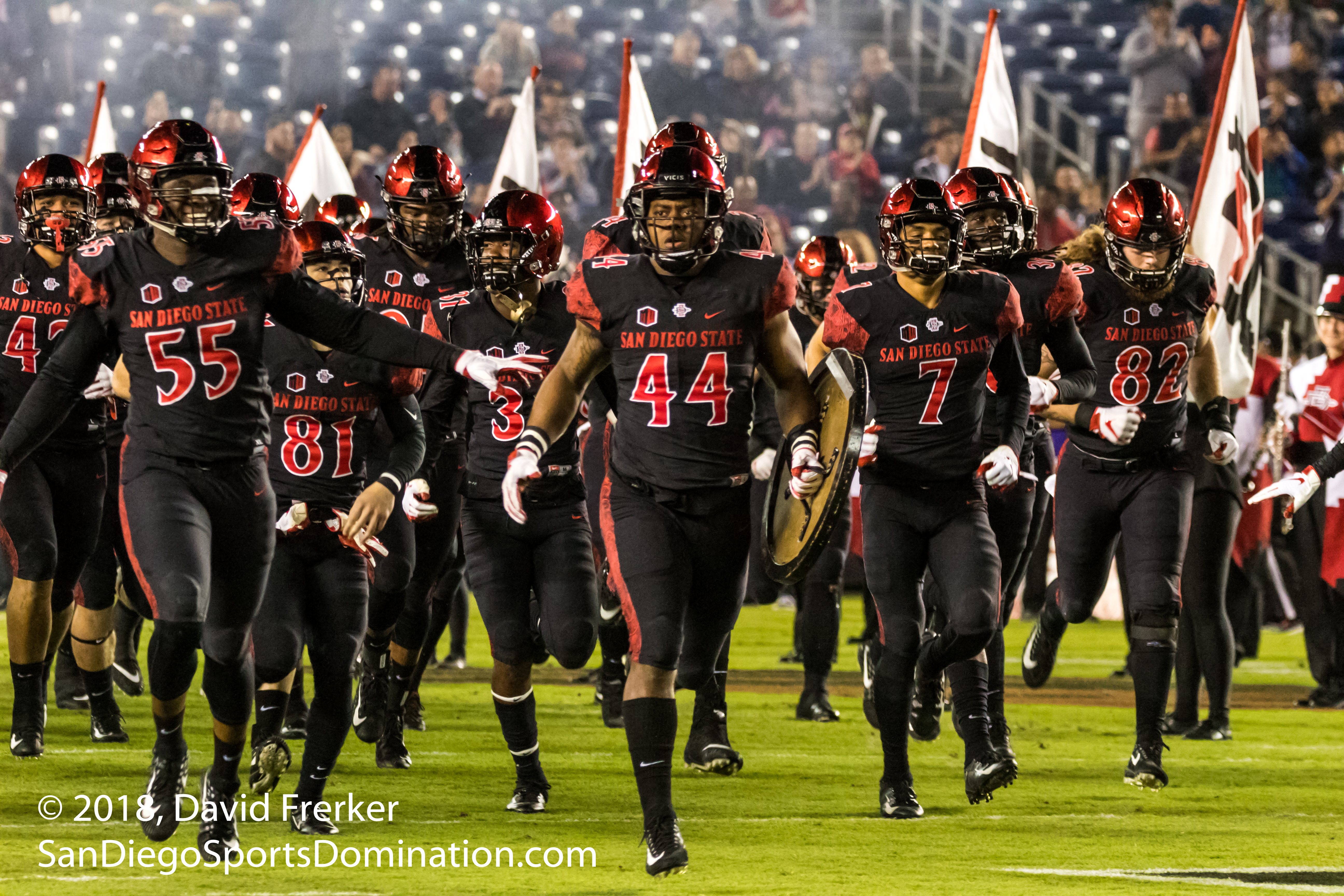 We have the pleasure of photographing the Marching Aztecs. Our goal is to make highlight videos for all of the games. Around the videos we also take a ton of photos. We have been asked to share our photos online by our fans. We hope you like all of the images. Images are by David Frerker. Also included is a short 1 minute video following the drumline and the band around to warrior walk and tailgate stop.